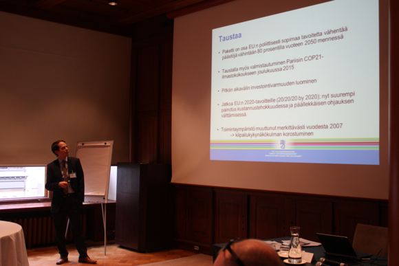 Paikallisvoiman toiminnanjohtaja Roald von Schoultz avasi tilaisuuden kertomalla paikallisten energiayhtiöiden tulevaisuuden visioista. Von Schoultzin mukaan energiatulevaisuuden tulisi perustua energiaomavaraisuuden parantamiseen, politiikan pitkäjänteisyyteen, kotimaisuuteen ja markkinalähtöisyyteen.Neuvotteleva virkamies Mika Kukkonen työ- ja elinkeinoministeriön energiaosastolta kertoi seminaariyleisölle EU:n ilmasto- ja energiapolitiikan kehyksestä vuoteen 2030. Kukkosen mukaan toimintaympäristö on muuttunut merkittävästi vuodesta 2007, jolloin edellisiä 20-20-20-tavoitteita sorvattiin. Erityisesti kilpailukykynäkökulma on nyt korostunut talouden tilan vuoksi ja ilmasto- ja energiapolitiikassa suurempi painotus asetetaan kustannustehokkuudelle sekä päällekkäisen ohjauksen välttämiselle.Marko Silokoski, â€verkkojäärä Raumaltaâ€, kävi läpi paikallisen verkkoyhtiön toimintaedellytyksiä lähitulevaisuudessa. Silokoski kritisoi lempeän humorisesti Energiaviraston sähköverkkotoiminnan sääntelyä. Lisäksi hän pohti ääneen, miten pienet verkkoyhtiöt tulevat selviämään tulevaisuuden haasteista, kuten pienevästä siirtoenergiasta ja uuden sähkömarkkinalain asettamista investointivelvotteista.Hallitusneuvos Arto Rajala TEM:stä kommentoi Marko Silokosken puheenvuoroa. Rajalan mukaan Suomessa sähkönjakelun olosuhteet vaihtelevat voimakkaasti ja olosuhteiden erot pyritään ottamaan huomioon sääntelyn kehittämisessä mahdollisuuksien mukaan. Rajalan mukaan muut infrastruktuurit rakentuvat nykyään sähkönsaannin varaan ja tämän takia tarvitaan riittävän hyvätasoinen toimitusvarmuus.Seminaarin lopuksi Jussi Lehto grillasi viiden eri puolueen eurovaaliehdokkaita EU:n 2030-tavoitteista, päästökaupan tulevaisuudesta, paikallisten energiayhtiöiden asemasta Euroopassa ja EU:n energiaulkosuhteista erityisesti Venäjän kanssa. Paneeliin osallistuivat Eija-Riitta Korhola (Kokoomus), Pirkko Mattila (Perussuomalaiset), Hannu Takkula (Keskusta), Harri Auvinen (Vihreät) ja Eero Vainio (SDP).Eija-Riitta Korhola piti hyvänä Euroopan komission ehdotuksessa 2030-tavoitteiksi päällekkäisistä tavoitteista luopumista. Hannu Takkula näki paikallisten energiayhtiöiden tulevaisuuden valoisana, mutta korosti kaikkien suomalaisten edunvalvojien tarvetta pysyä hereillä biomassan kestävyyskriteerien valmistelun osalta.Vihreiden Harri Auvinen toi esiin kotimaisen metsähakkeen mahdollisuuksia Suomen uusiutuvan energian politiikassa. Myös SDP:n Eero Vainio näki uusiutuvassa energiassa paljon potentiaalia ja puhui monipuolisen energiantuotantopaletin puolesta. Perussuomalaisten Pirkko Mattilan mukaan kotimaisen turpeen kilpailukyvystä on huolehdittava.